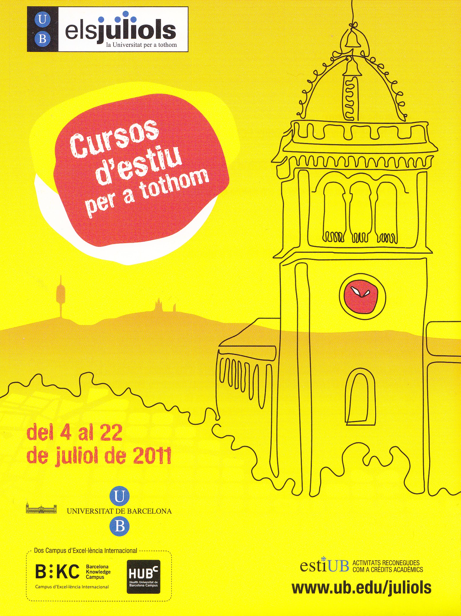 Ja disposeu del programa d’Els Juliols, l’oferta de cursos d’estiu de la Universitat de Barcelona (UB). Enguany aquesta 15a edició està formada per 54 cursos, que tindran lloc del 4 al 22 de juliol de 2011.