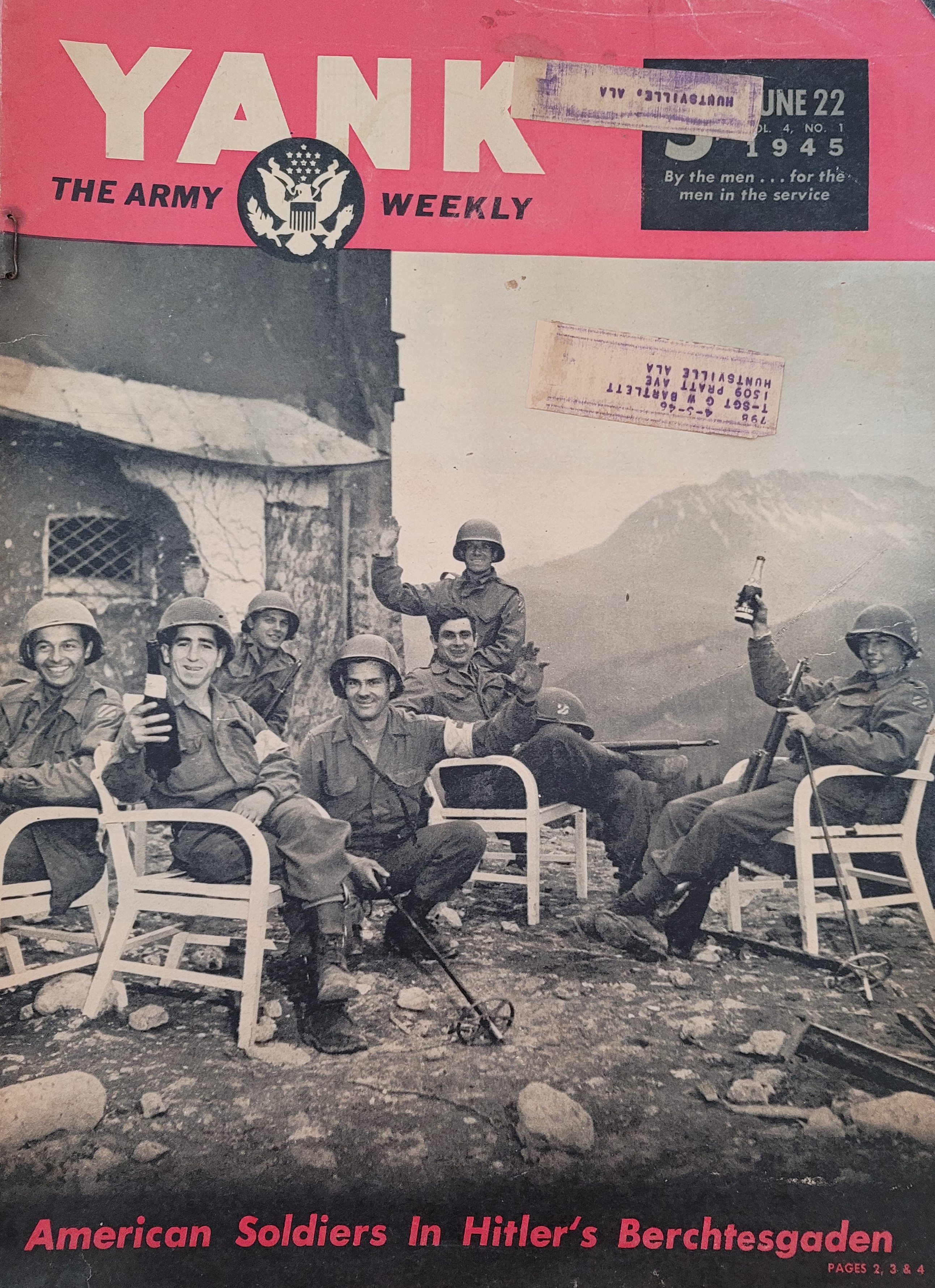 A la portada d’aquest exemplar es poden veure uns soldats americans que es troben a Berchtesgaden, la residència que tenia Adolf Hitler, el dictador alemany, als Alps austríacs.