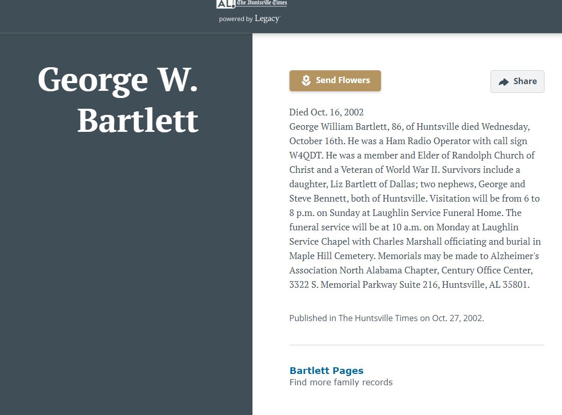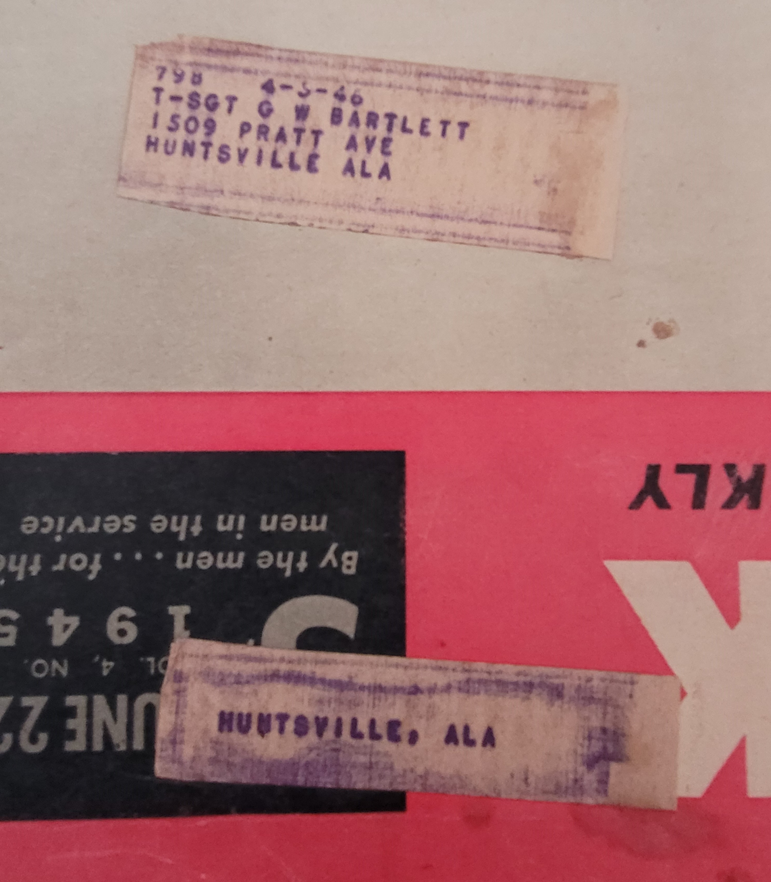 Aquest número va ser enviat a la població de Huntsville, Alabama l’any 1945 i el destinatari era George William Bartlett.