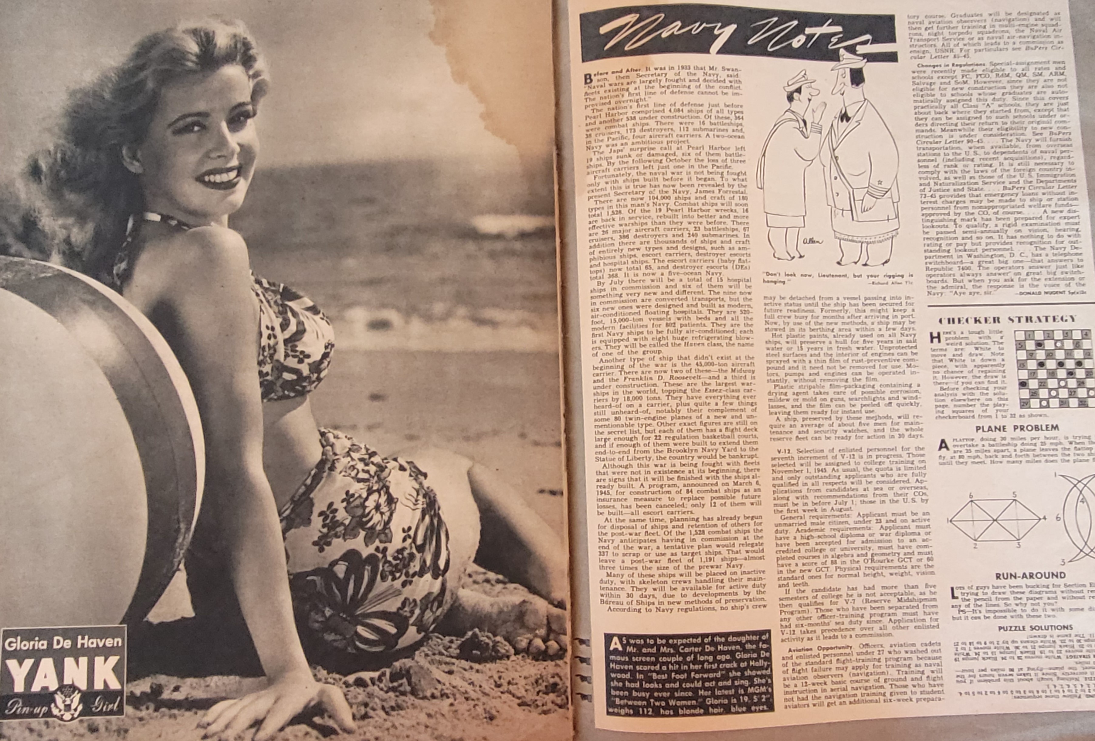 Es sabut que una de les coses que més pujava la moral als soldats eren les imatges de les anomenades pin-ups, i com a anècdota direm que una, encara desconeguda Marilyn Monroe, que aleshores estava casada amb el mariner James Dougherty, va aparèixer en el número del 2 d’agost de 1945 en un article sobre la contribució de les dones a la guerra.