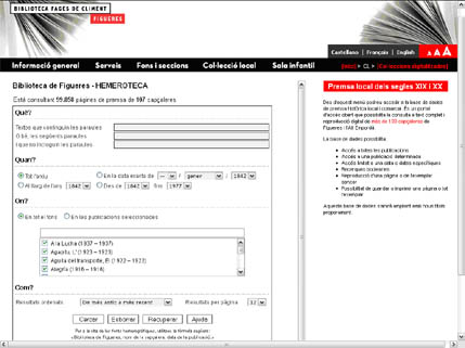 L’aplicació que gestiona aquesta col·lecció digital permet realitzar consultes, bàsiques i avançades, per una sèrie de camps i l’accés a la lectura dels exemplars digitalitzats. El format de les publicacions digitals, en PDF amb lectura OCR, localitza a Consulta de ejemplares qualsevol paraula en el text de la publicació.