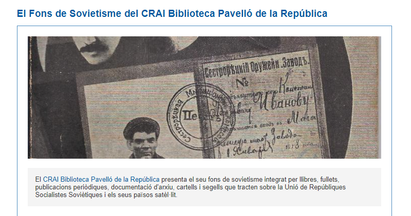 I amb motiu de la celebració de les I Jornades Internacionals sobre la participació soviètica a la Guerra d’Espanya que van tenir lloc a la Universitat de Barcelona l’any 2017 vam recollir una mostra del material que tenim al nostre arxiu i biblioteca relacionat amb la temàtica i que vam mostrar en aquest altre recurs: