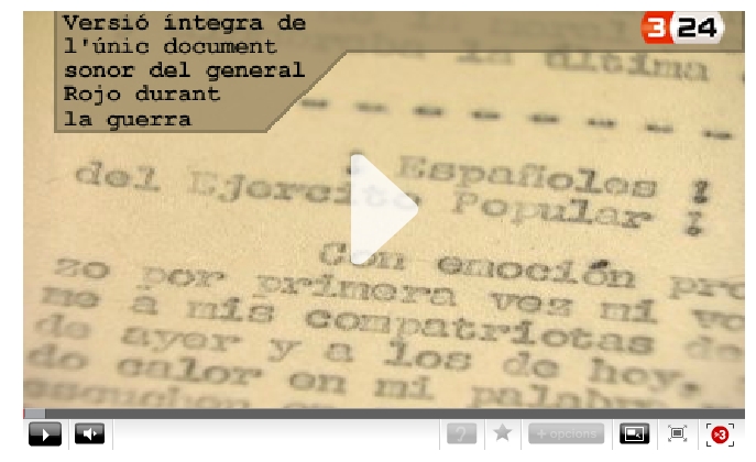 Fa uns quants dies va sortir la notícia que TV3 Televisió de Catalunya ha tingut accés a l’únic missatge per ràdio que el cap de l’exèrcit republicà Vicente Rojo va fer durant la guerra civil espanyola, uns dies abans que Barcelona caigués en mans franquistes. La família el va trobar amb la documentació del militar i ara surt a la llum setanta-quatre anys després.